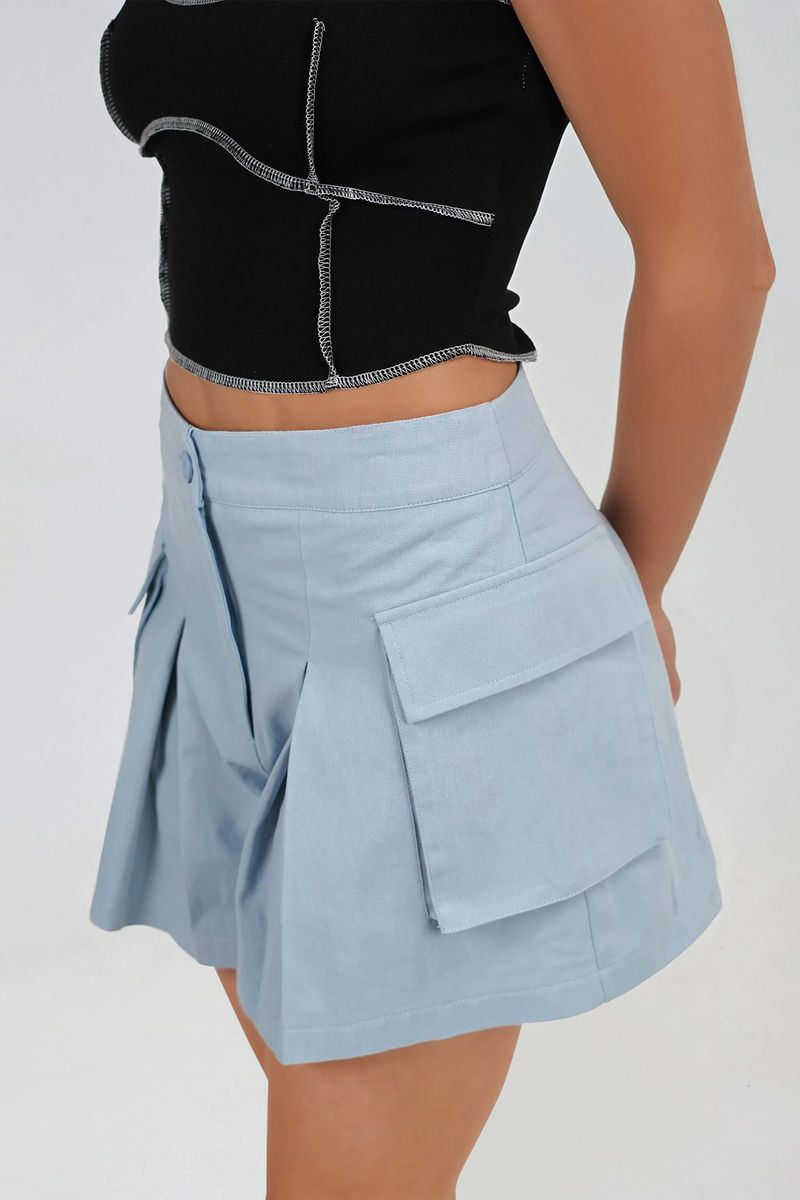 Cool Factor Pleated Shorts in LT Denim give casual style a fresh upgrade. Designed with crisp pleats and handy side cargo pockets, these shorts balance laid-back comfort with a polished edge. The relaxed fit makes them perfect for everyday wear, while the structured details keep your look effortlessly cool. Pair with sandals, sneakers, or even a crop top—these shorts are the definition of easygoing chic.